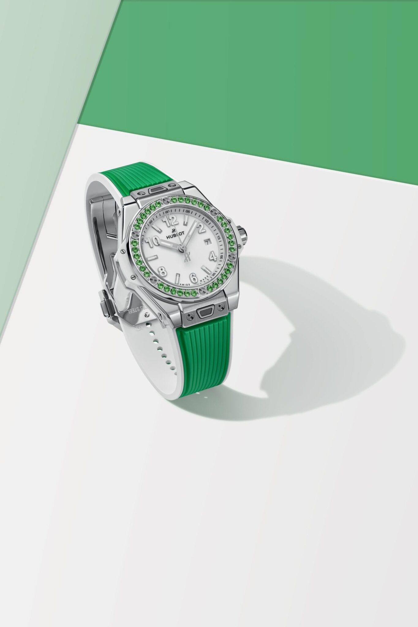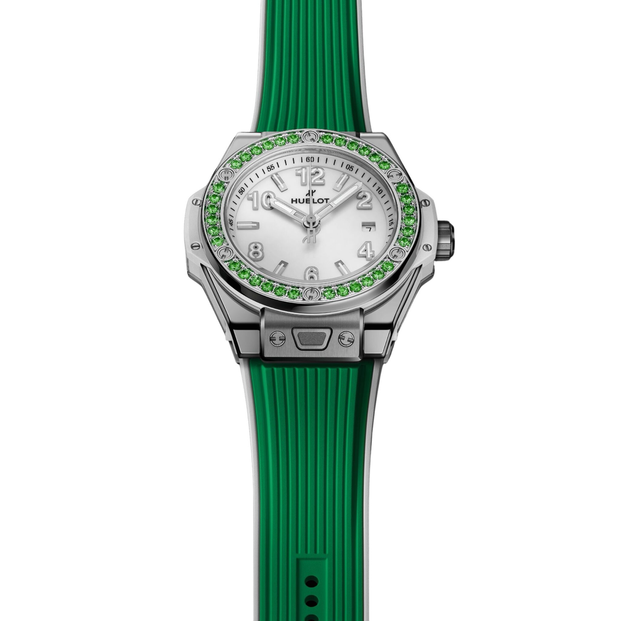 Montre Hublot Big Bang One Click Joyful Steel Apple Green automatique cadran blanc bracelet caoutchouc 33 mm